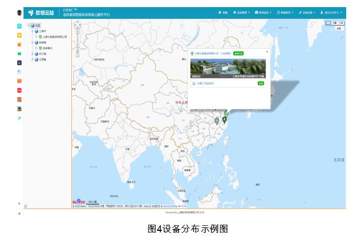 对设备厂商的业务范围进行地理信息展示,首页初始化显示所有设备的地理位置信息,以点状或者图标的方式展示,点击图标可弹出污水厂或买家名称、设备名称、设备型号、投产时间、实际运营时间等。 本模块可直观明了的查看公司所属项目的地点信息、公司所属设备的运行信息。