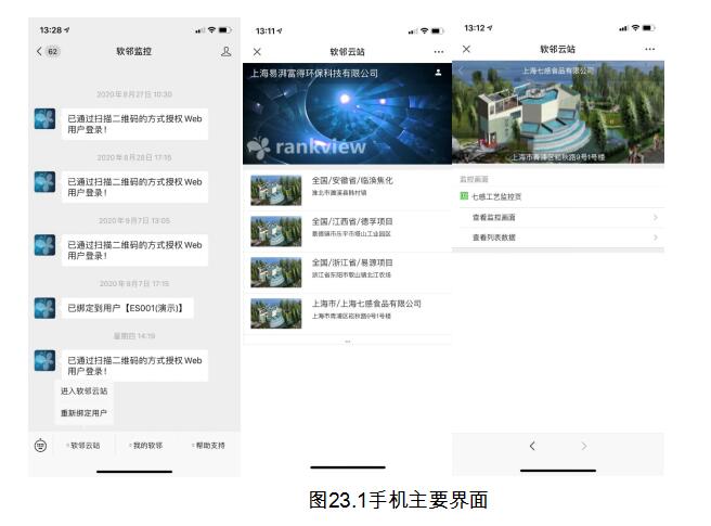 系统提供手机移动应用,使污水处理厂可以在移动互联网络,实现工艺数据、报表数据的查看,功能包括设备查看、报表查询、历史数据。